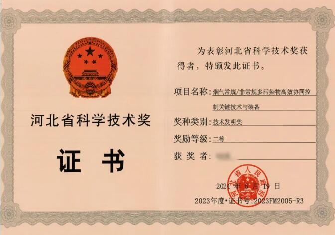 菲達環保為主參與的減污降碳項目榮獲河北省技術發明獎二等獎