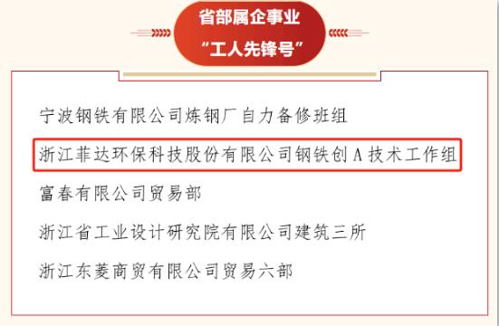 菲達環保鋼鐵創A技術工作組獲省部屬企事業“工人先鋒號”稱號